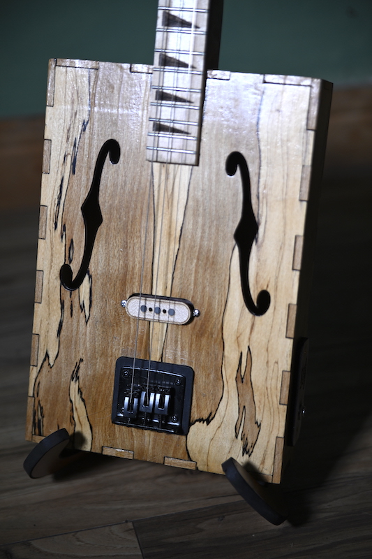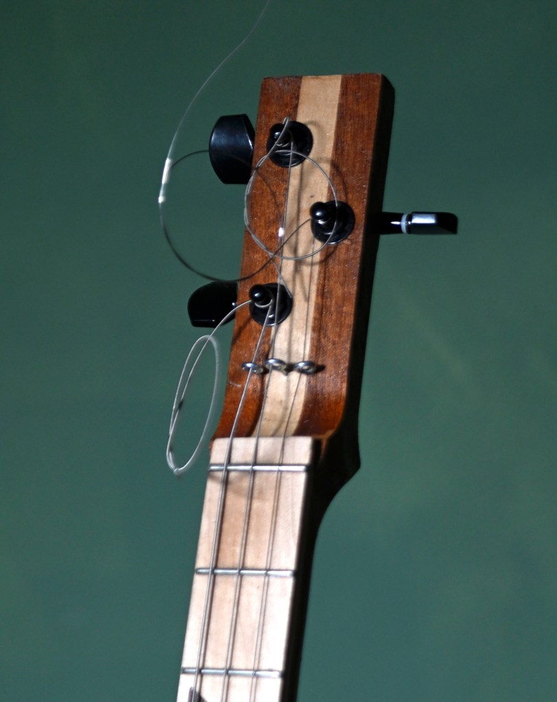 3 string Beech wood body, featuring laminated neck, single pickup and adjustable bridge, f hole design, engraved position markers and steel frets. £320 (inc P&P within UK)