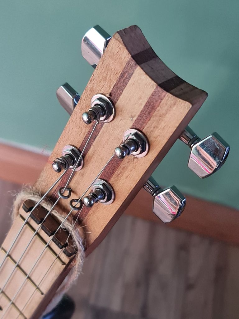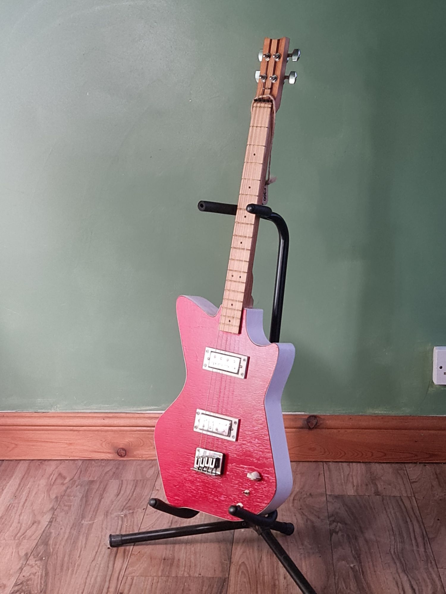 4 string laminated wood body, featuring laminated neck, dual pickup and adjustable bridge, volume knob, pickup selectopr switch (2 position) engraved position markers and steel frets . £380 (inc P&P within UK)